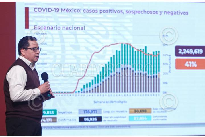 CIUDAD DE MÉXICO, 22OCTUBRE2020. - Hugo López-Gatell, titular de la Subsecretaría de Prevención y Promoción de la Salud y José Luis Alomía Zegarra, director general de epidemiología de la Secretaría de Salud, durante la conferencia de informe COVID-19 que se lleva a cabo en Palacio Nacional. FOTO: ANDREA MURCIA /CUARTOSCURO.COM