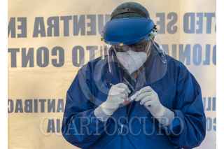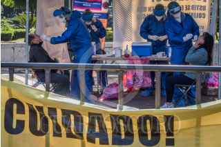 CIUDAD DE MÉXICO, 23OCTUBRE2020.- Vecinos de la colonia Santa Cruz Atoyac continúan asistiendo a realizarse la prueba PCR para la detección de coronavirus (covid-19) en el "kiosco" de atención ubicado en la explanada principal de la Alcaldía Bénito Juárez. Autoridades de la capital indicaron que se mantendrá el semáforo epidemiológico naranja con alerta debido a los recientes incrementos de hospitalizaciones en las últimas semanas. FOTO: MARIO JASSO/CUARTOSCURO.COM