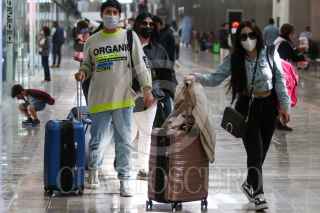 CIUDAD DE MÉXICO, 23OCTUBRE2020.- El flujo en el Aeropuerto Internacional de la Ciudad de México (AICM) continúa en aumento con respecto al inicio de la pandemia por Covid-19. Esto debido al relajamiento de las medidas preventivas por parte de la sociedad, así como la disminución de casos activos en los destinos. Sin embargo, los rebrotes han comenzado a aparecer, por lo que la Secretaría de Salud llamó a los ciudadanos a evitar viajes internacionales La Ciudad de México permanecerá por décimo séptima semana consecutiva, así lo informa la jefa d Gobierno Claudia Sheinbaum. FOTO: GALO CAÑAS /CUARTOSCURO.COM