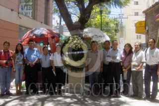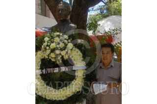 CHILPANCINGO, GUERRERO 30MAYO2006.- Pedro Arzeta Garcia dirigente de la delegación XVII del Sindicato Nacional de Redactores de la Prensa (SNRP), emite su mensaje, durante la ofrenda floral y guardia de honor realizada en la plaza de la libertad de expresión, para conmemorar un aniversario más del asesinato del periodista Manuel Buendia. FOTO: Oscar Alvarado/CUARTOSCURO.COM