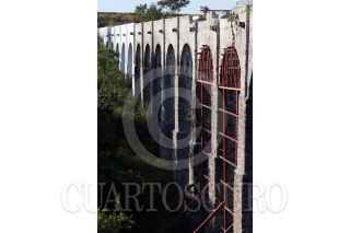 YECAPIXTLA, MORELOS,24OCTUBRE2020.- Acueducto de Tecajec, ubicado al sur de esta localidad. Esta estructura de piedra de cantera servía para el riego de diferentes cultivos en el periodo novohispano del siglo XIX, formaba parte de la arquitectura hidráulica de esa época, con un importante valor estético e histórico. En el mes de marzo se inició la obra de reconstrucción luego de que fue dañado por el sismo del 19 de septiembre del 2017, en ella participaba personal del Instituto Nacional de Antropología e Historia y el municipio a través del Programa Nacional de Reconstrucción, lamentablemente los trabajos se detuvieron por la pandemia del Covid. Algunas estructuras de metal soportan algunos arcos. FOTO: MARGARITO PÉREZ RETANA /CUARTOSCURO.COM