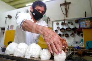 PUEBLA, PUEBLA, 24OCTUBRE2020.- El taller de dulce "El Colibrí", ubicado en el centro histórico de la capital poblana, elabora calaveras de azúcar las cuales son colocadas en las ofrendas familiares para este día de muertos. FOTO:MIREYA NOVO/CUARTOSCURO.COM