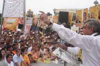 XALAPA, VERACRUZ 30MAYO2006.- Andrés Manuel López Obrador, candidato de la Coalición Por el Bien de Todos. PRD-PT-Convergencia, realizó un mitin de campaña como parte de su gira por esa entidad, en donde dirgió un discurso y saludo a los simpatizantes. FOTO: Carlos Tischler/CUARTOSCURO.COM