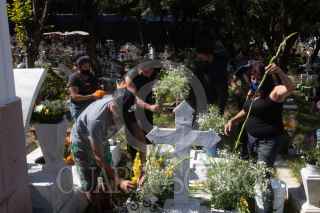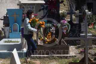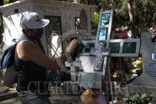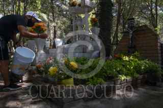 CIUDAD DE MÉXICO, 25OCTUBRE2020.- Familiares acudieron a visitar los restos de sus seres queridos al panteón Xilotepec, alcaldía Xochimilco, previo al cierre de las inmediaciones por la pandemia del Covid-19. Los horarios son de 8 a 17 horas hasta el 30 de octubre. FOTO: GRACIELA LÓPEZ /CUARTOSCURO.COM