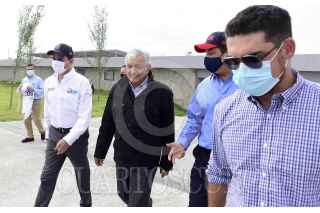 NUEVO LAREDO, TAMAULIPAS, 25OCTUBRE2020.- Andrés Manuel López Obrador, Presidente Constitucional de los Estados Unidos Mexicanos, encabezó el evento "Acciones de Mejoramiento Urbano en Nuevo Laredo". Lo acompañaron al mandatario: Román Meyer, Secretario de Desarrollo Agrario; territorial y Urbano; Javier García Cabeza de Vaca, Gobernador de Tamaulipas y Óscar Enrique Rivas, Presidente municipal de Nuevo Laredo. FOTO: PRESIDENCIA/CUARTOSCURO.COM