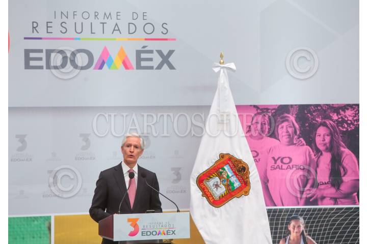 TOLUCA, ESTADO DE MÉXICO, 26OCTUBRE2020.- Alfredo del Mazo Maza, Gobernador del Estado de México presentó su Tercer Informe de Labores, en el patio central de Palacio de Gobierno, acompañado de muy pocos invitados. FOTO: CRISANTA ESPINOSA AGUILAR /CUARTOSCURO.COM