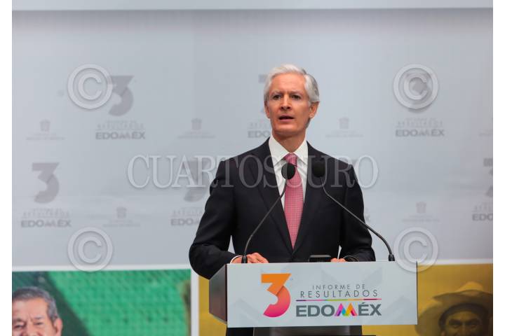 TOLUCA, ESTADO DE MÉXICO, 26OCTUBRE2020.- Alfredo del Mazo Maza, Gobernador del Estado de México presentó su Tercer Informe de Labores, en el patio central de Palacio de Gobierno, acompañado de muy pocos invitados. FOTO: CRISANTA ESPINOSA AGUILAR /CUARTOSCURO.COM