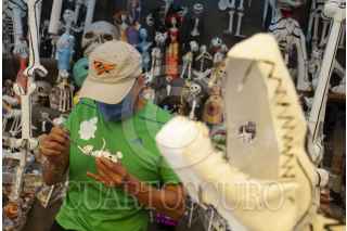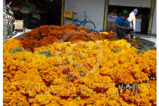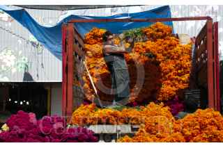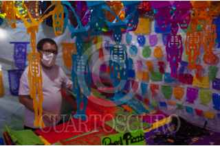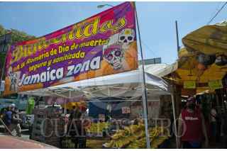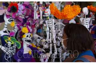 CIUDAD DE MÉXICO, 26OCTUBRE2020.- Como cada año, la romería de Día de Muertos ubicada en el Mercado de Jamaica, sobre la Avenida H. Congreso de La Unión, comienza la venta de disfraces, calaveritas, flores y adornos que decenas de familias colocarán en sus ofrendas o las tumbas de sus difuntos, para esta ocasión, los vendedores se adaptan a las condiciones actuales que exige la presencia de la pandemia de Covid-19, el uso de cubrebocas durante su trayecto y la aplicación de gel antibacterial a la llegada, son requisitos para poder acceder a comprar. FOTO: DANIEL AUGUSTO /CUARTOSCURO.COM