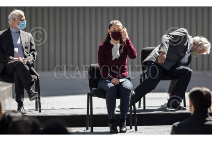 CIUDAD DE MÉXICO. 26OCTUBRE2020.- La jefa del Gobierno de la Ciudad, Claudia Sheinbaum Pardo, acompañada de la titular de Salud, Olivia López Arellano, celebraron en la explanada de la dependencia, el Día del Médico. Entregaron premios y reconocimientos a personal de la salud. FOTO: VICTORIA VALTIERRA/CUARTOSCURO.COM