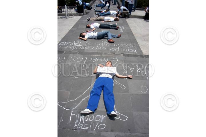 MÉXICO D.F. 31 MAYO 2006.- Jesús Robles, presidente del partido Alternativa Social Demócrata y Campesina y un grupo de jóvenes y militantes de Alternativa se manifestarón a las afueras de las intalaciones de la Secretaria de Salud, por la ineficiencia de la campaña encontra del tabaquismo que realiza esta secretaria, esto en el día Mundial Sin Tabaco. FOTO : Guillermo Perea/ CUARTOSCURO.COM