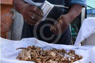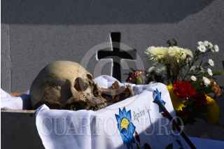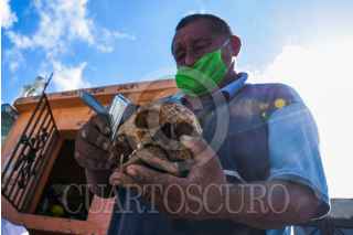 POMUCH, CAMPECHE, 26OCTUBRE2020.- Ante el posible cierre de cementerios para evitar aglomeramientos debido a la pandemia del covid-19, pobladores de la villa de Pomuch del municipio de Hecelchakan en el estado de Campeche, se adelantaron al ritual milenario de sus ancestros mayas del Choo Ba'ak o limpieza de huesos, tradición en el poblado en estas fechas conmemorativas de fieles difuntos o Hanal Pixan (comida para las almas). Este ritual donde se prepara al familiar para su regreso ha sido preservado por generaciones mayas, y hoy día, a pesar de la pandemia y de las restricciones se niegan a dejar morir esta herencia de la cultura maya. FOTO: MICHAEL BALAM/CUARTOSCURO.COM