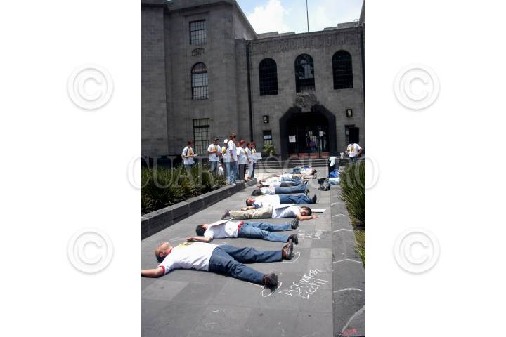 MÉXICO D.F. 31 MAYO 2006.- Jesús Robles, presidente del partido Alternativa Social Demócrata y Campesina y un grupo de jóvenes y militantes de Alternativa se manifestarón a las afueras de las intalaciones de la Secretaria de Salud, por la ineficiencia de la campaña encontra del tabaquismo que realiza esta secretaria, esto en el día Mundial Sin Tabaco. FOTO : Guillermo Perea/ CUARTOSCURO.COM