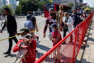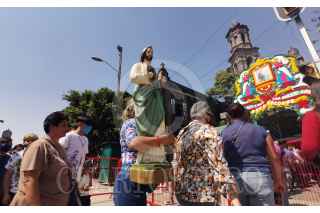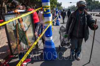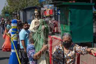 CIUDAD DE MÉXICO, 27OCTUBRE2020.- Con todo y alerta por el aumento de casos de personas hospitalizadas en la capital por el Covid-19, cientos de creyentes de San Judas Tadeo se dieron cita en el templo de San Hipólito, pero esta vez autoridades de la iglesia implementaron la entrada en tandas de 50 personas para ingresas, además de que les proporcionaba gel antibacterial. Sin embargo, los presentes tuvieron que esperar más de una hora para poder acceder, ya que después de la misa de medio día tuvieron que desinfectar el interior del templo. En el altavoz se informó que mañana no habrán actividades para evitar aglomeraciones y pidió a los fieles de San Judas que no acudan para evitar riesgos de contagio de Coronavirus. FOTO: MOISÉS PABLO/CUARTOSCURO.COM