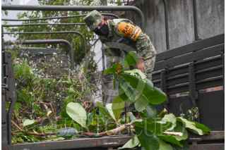 PUERTO MORELOS, QUINTANA ROO, 27OCTUBRE2020.- Militares proceden a realizar labores de limpieza tras el paso del huracán "Zeta" en Quintana Roo. FOTO: ELIZABETH RUIZ/CUARTOSCURO.COM
