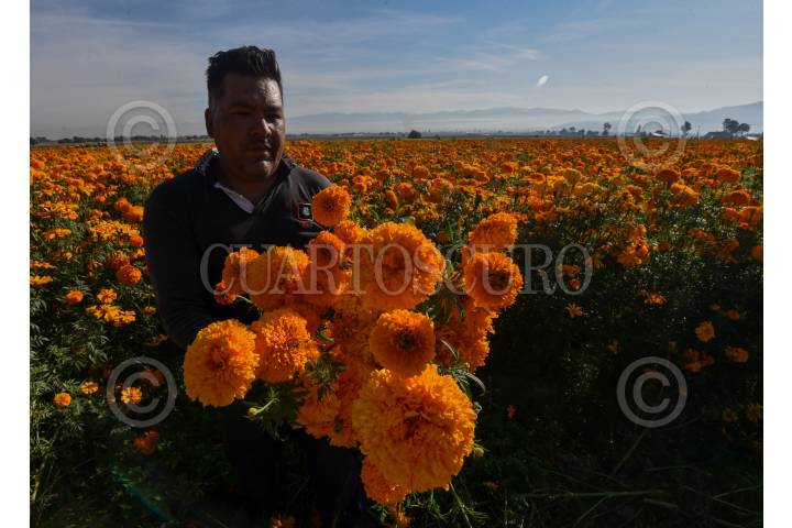 TENANGO DEL VALLE, ESTADO DE MÉXICO, 27OCTUBRE2020.- Desde muy temprana hora en los campos de flor en San Francisco Putla se comienza el corte de la flor de cempasúchil, nube y alhelí que será utilizada para adornar las ofrendas por el Día de Muertos, los productores hicieron un llamado a la población a conservar las tradiciones y a pesar de que los panteones estarán cerrados pueden instalar sus ofrendas en casa utilizando las flores del campo mexicano. FOTO: CRISANTA ESPINOSA AGUILAR /CUARTOSCURO.COM