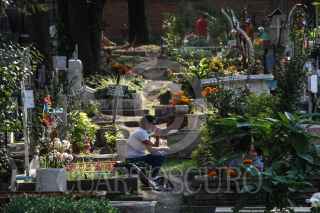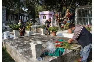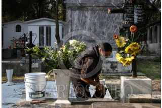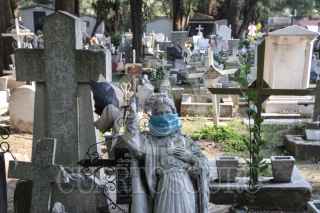 CIUDAD DE MÉXICO, 27OCTUBRE2020.- Debido a la pandemia por Covid-19, los panteones de la ciudad permanecerán cerrados para las celebraciones de Día de Muertos, por lo que familias aprovechan la apertura parcial de los caños santos para adornan las tumbas de sus difuntos antes de que las autoridades los cierren para evitar aglomeraciones y contagios de coronavirus. FOTO: ROGELIO MORALES /CUARTOSCURO.COM