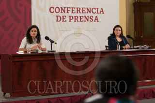 CIUDAD DE MÉXICO. 27OCTUBRE2020.- Luisa María Alcalde, titular del Trabajo acompañada de la Procuradora Carolina Ortíz Porras de la Profedet, en el informe diario de Bienestar, en el Palacio Nacional. FOTO: VICTORIA VALTIERRA/CUARTOSCURO.COM