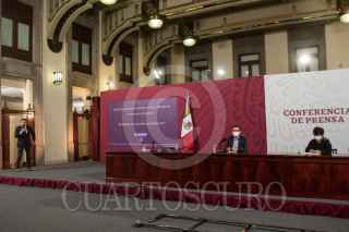 CIUDAD DE MÉXICO. 27OCTUBRE2020.- Conferencia de prensa informe de la secretaría de Economía y Sedatu; Horacio Esquivel, Gerardo Franco y Edna Elena Vega Rangel, en el salón Tesorería del Palacio Nacional, de Palacio Nacional. FOTO: VICTORIA VALTIERRA/CUARTOSCURO.COM