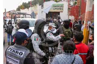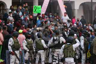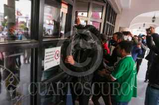 OCOYOACAC, ESTADO DE MÉXICO, 27OCTUBRE2020.- Pobladores de Ocoyoacac se manifestaron en el Palacio Municipal exigiendo seguridad y justicia después del asesinato de una familia en este municipio, rompieron vidrios del edificio y vandalizaron una patrulla, al no ser recibidos por la alcaldesa Anallely Olivares; en repetirás ocasiones la seguridad ha sido un reclamo por parte de la población; el inmueble fue cerrado con cadena y candado y elementos de la Guardia Nacional dialogaron con los pobladores. FOTO: CRISANTA ESPINOSA AGUILAR /CUARTOSCURO.COM