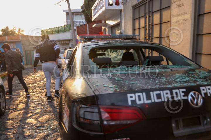 OCOYOACAC, ESTADO DE MÉXICO, 27OCTUBRE2020.- Pobladores de Ocoyoacac se manifestaron en el Palacio Municipal exigiendo seguridad y justicia después del asesinato de una familia en este municipio, rompieron vidrios del edificio y vandalizaron una patrulla, al no ser recibidos por la alcaldesa Anallely Olivares; en repetirás ocasiones la seguridad ha sido un reclamo por parte de la población; el inmueble fue cerrado con cadena y candado y elementos de la Guardia Nacional dialogaron con los pobladores. FOTO: CRISANTA ESPINOSA AGUILAR /CUARTOSCURO.COM