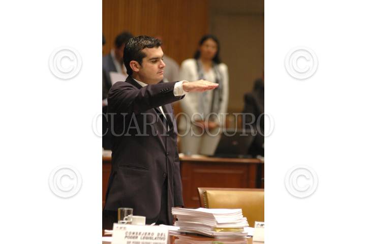 MÉXICO, D.F. 31MAYO2006.- Germán Martínez, representante del Partido Acción Nacional (PAN) ante el Instituto Federal Electoral (IFE) conversa con los consejeros Rodrigo Morales Manzanares y Marco Antonio Gómez Alcántar, durante la sesión ordinaria del IFE donde los consejeros resolvieron sancionar al PAN con 146 mil pesos por violar el artícvulo 25 del código electoral que obliga a los institutos políticos a rechazar apoyo de extranjeros en sus campañas. FOTO: Iván Stephens/CUARTOSCURO.COM