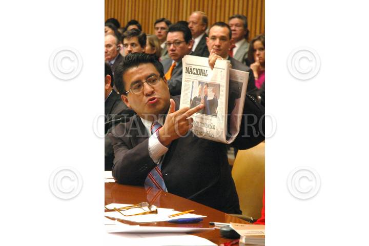 MÉXICO, D.F. 31MAYO2006.- Germán Martínez, representante del Partido Acción Nacional (PAN) ante el Instituto Federal Electoral (IFE) conversa con los consejeros Rodrigo Morales Manzanares y Marco Antonio Gómez Alcántar, durante la sesión ordinaria del IFE donde los consejeros resolvieron sancionar al PAN con 146 mil pesos por violar el artícvulo 25 del código electoral que obliga a los institutos políticos a rechazar apoyo de extranjeros en sus campañas. FOTO: Iván Stephens/CUARTOSCURO.COM