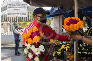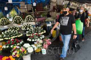 CIUDAD DE MÉXICO. 28OCTUBRE2020.- El panteón Francés, cerraraá sus puertas el próximo viernes hasta el martes, por disposición de oficial de no permitir aglomeraciones por el festejo de dia de muertos. Venta de flores de Cempazúchitl, en la entrada, del campo santo. FOTO: VICTORIA VALTIERRA/CUARTOSCURO.COM