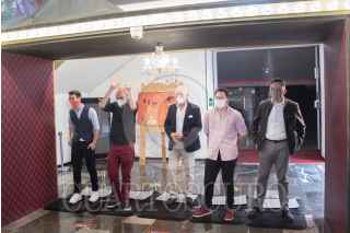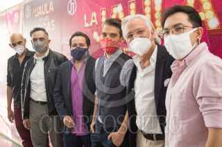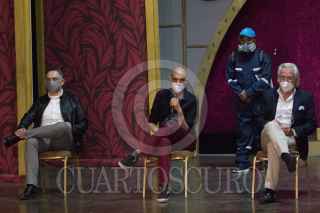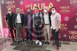 CIUDAD DE MÉXICO, 28OCTUBRE2020.- Los actores Mario Sepúlveda, Rubén Branco, Eugenio Montessoro, Rogelio Suárez, y Carlos Pulido, y el productor Juan Torres, anunciaron el regreso de la puesta en escena "La Jaula de las Locas", para este próximo sábado en el Teatro Hidalgo. El cual ha sido adecuado con las medidas sanitarias para garantizar la salud de los asistentes, en medio de la pandemia de Covid-19. FOTO: MOISÉS PABLO/CUARTOSCURO.COM
