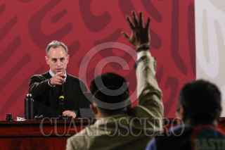 CIUDAD DE MÉXICO, 28OCTUBRE2020.- Hugo López-Gatell Ramírez, Subsecretario de Prevención y Promoción de la Salud, José Luis Alomía Zegarra, director de Epidemiología y Cristian Zaragoza titular de la dirección de Epidemiología, durante la conferencia vespertina sobre el COVID-19, en donde se dio a conocer que 10 mil 597 personas pertenecientes a los grupos originarios han dando positivo a COVID-19, siendo los estados que encabezan la lista Yucatán, San Luis Potosí y Oaxaca. FOTO: ROGELIO MORALES /CUARTOSCURO.COM