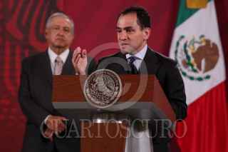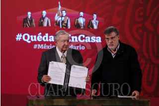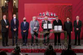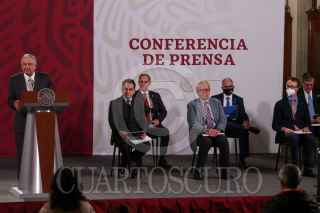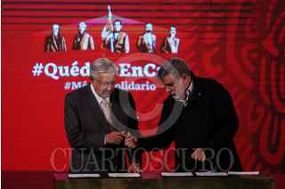 CIUDAD DE MÉXICO, 29OCTUBRE2020.- Durante la conferencia mañanera del presidente Andrés Manuel López Obrador se realizó la firma del acuerdo con la Oficina de las Naciones Unidas de Servicios para Proyectos (UNOPS) para la obtención de medicamentos. Esto con el fin de permitir a nuevas farmacéuticas comercializar insumos médicos dentro del territorio y no favorecer a sólo alguna empresas, afirmó el mandatario. Durante la conferencia estuvieron presentes: Julio Scherer Ibarra, consejero jurídico de la Presidencia; Arturo Herrera, secretario de Hacienda y Crédito Público (SHCP); Giuseppe Mancinelli, director regional adjunto para América Latina y el Caribe de la UNOPS; Cristian Morales Fuhrimann, representante de la Organización Para la Salud (OPS) en México; Jorge Alcocer, secretario de Salud; Marcelo Ebrard, secretario de Relaciones Exteriores (SRE) y Hugo López-Gatell, subecretario de Prevención y Promoción a la Salud. FOTO: GALO CAÑAS/CUARTOSCURO.COM