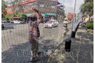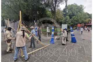 CIUDAD DE MÉXICO, 29OCTUBRE2020.- Los jardínes del centro de Coyoacán fueron cercados con una malla de acero para evitar aglomeraciones de personas en estos días en donde se festeja el Día de Muertos, autoridades de la alcaldía prevé que permanezcan cerrados estos espacios públicos hasta el próximo martes. La Jefa de Gobierno señaló que poco probable que la ciudad regrese a semáforo rojo de la alerta epidemiológica por el Covid-19, pero que ante el incremento de casos las restricciones en la vida social podrían incrementar. FOTO: MOISÉS PABLO/CUARTOSCURO.COM