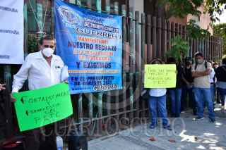 CHILPACINGO, CIUDAD DE MÉXICO, 29OCTUBRE2020.- Maestros del programa de escuelas de tiempo completo se manifestaron a las afueras del Congreso del estado para pedir una mesa de diálogo con diputados y representantes del gobierno estatal para solucionar adeudos que arrastran desde el ciclo escolar pasado y se les garanticen salarios en el periodo Septiembre-Diciembre 2020. El grupo de maestros colgó lonas sobre la reja principal en las que se leen sus demandas, que se basan en la garantía de sus prestaciones como docentes. Víctor Pina Pérez, representante de los maestros, señaló que del ciclo escolar pasado les adeudan 494 pesos a alrededor de 9 mil trabajadores. Por otro lado, de este ciclo escolar que inició el pasado mes de agosto, señaló que no les han dado contratos y tampoco tienen certeza de que les paguen el periodo septiembre-diciembre, dado que la Secretaría de Hacienda y Crédito Público no ha hecho la dispersión de recursos. En ese sentido, piden que el gobierno del estado absorba el gasto de la operatividad y que posteriormente le sea devuelto por la federación. Otra de las demandas del grupo de maestros es que los diputados locales exhorten a los federales para que no desaparezca el programa de escuelas de tiempo completo para el próximo año. FOTO: DASSAEV TÉLLEZ ADAME / CUARTOSCURO.COM