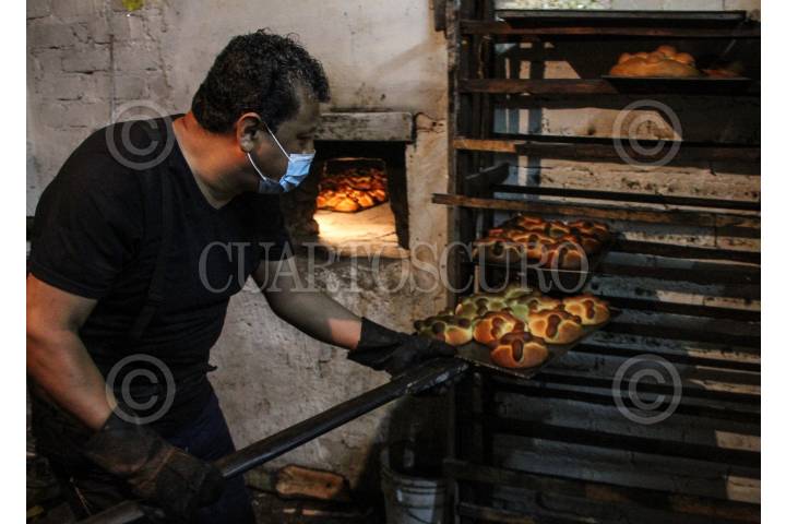 CIUDAD DE MÉXICO, 30OCTUBRE2020.- Las familia Sánchez, se dedica a la elaboración de pan de muerto desde hace 50 años, está tradición inicio con el señor Cuapio quien en un principio se dedica a a la elaboración de pan de feria. En la actualidad la mayor parte de la familia apoya a la elaboración del pan de muerto durante los meses de octubre e inicios de noviembre, para prevalecer la tradición y generar una entrada extra de dinero. El pan se realiza de una forma artesanal de principio a fin desde la hechura de la masa hasta su cocimiento en el tradicional horno de piedra, el cual es calentado durante más de 4 horas con poco más de 40 manojos de leña por día lo que permite a la familia la elaboración de cerca de 600 panes por semana, el costo de los panes va dese los 13 hasta los 180 pesos, dependiendo los ingredientes y diseño que se solicite previamente. FOTO: ROGELIO MORALES /CUARTOSCURO.COM