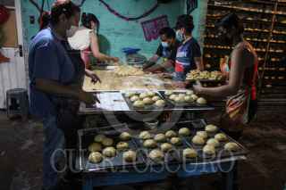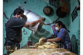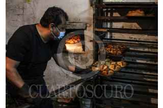 CIUDAD DE MÉXICO, 30OCTUBRE2020.- Las familia Sánchez, se dedica a la elaboración de pan de muerto desde hace 50 años, está tradición inicio con el señor Cuapio quien en un principio se dedica a a la elaboración de pan de feria. En la actualidad la mayor parte de la familia apoya a la elaboración del pan de muerto durante los meses de octubre e inicios de noviembre, para prevalecer la tradición y generar una entrada extra de dinero. El pan se realiza de una forma artesanal de principio a fin desde la hechura de la masa hasta su cocimiento en el tradicional horno de piedra, el cual es calentado durante más de 4 horas con poco más de 40 manojos de leña por día lo que permite a la familia la elaboración de cerca de 600 panes por semana, el costo de los panes va dese los 13 hasta los 180 pesos, dependiendo los ingredientes y diseño que se solicite previamente. FOTO: ROGELIO MORALES /CUARTOSCURO.COM