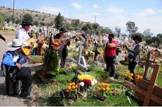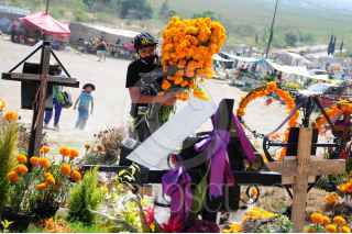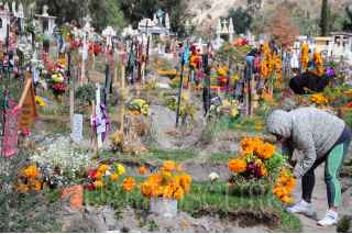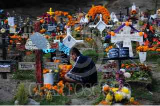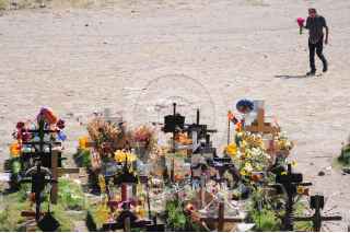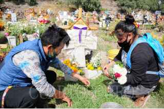 VALLE DE CHALCO, ESTADO DE MÉXICO, 30OCTUBRE2020. - El panteón de San Miguel Xico, ubicado en el municipio de Valle de Chalco, continúa recibiendo familias que vienen a visitar a sus difuntos y adornar sus respectivas tumbas para las celebraciones de Día de Muertos, las cuales, debido a la pandemia de Covid-19, obligaron al cierre total de todos los panteones para esas fechas con el objetivo de evitar aglomeraciones y se propague más el virus. FOTO: DANIEL AUGUSTO /CUARTOSCURO.COM