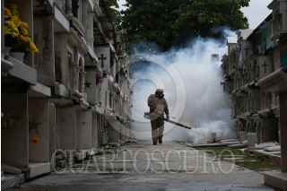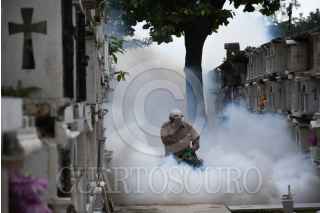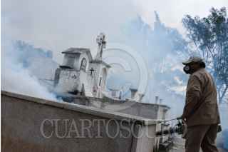 CAMPECHE, CAMPECHE, 30OCTUBRE2020.- En el estado de Campeche solo se han reportado 38 casos confirmados de Dengue, esto e el período de un mes, descartando el Zika y el Chinkungunya, la secretaria de salud estatal implemento mediante brigadas de vectores la realización de fumigación y rociado en cementerios para eliminar y evitar la proliferación del mosquito transmisor, esto ante las visitas anticipadas de familiares a los camposantos debido al cierre los días 1 y 2 de noviembre para evitar aglomeraciones y propiciar contagios de Covid-19. FOTO: MICHAEL BALAM /CUARTOSCURO.COM