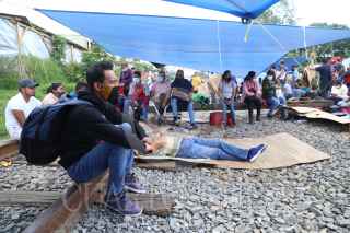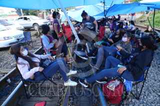 URUAPAN, MICHOACÁN, 30OCTUBRE2020.- Desde el pasado 2 de octubre, el grupo magisterial Poder de Base e integrantes del FNLS y del Comité Nacional Democrático bloquearon las vías del tren que mantiene varados más de cinco mil contenedores en el Puerto Lázaro Cárdenas, para exigir pagos de prestaciones y de salarios a maestros eventuales; trato igual a maestros federales y estatales; plazas automáticas a los egresados de escuelas normales, y diálogo directo con autoridades federales, así como reconocimiento por parte de los gobiernos federal y estatal a esta organización sindical. FOTO: JUAN JOSÉ ESTRADA SERAFÍN/CUARTOSCURO.COM
