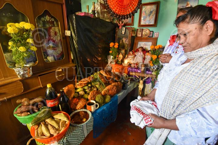 TOLUCA, ESTADO DE MÉXICO, 30OCTUBRE2020.- Comunidades indígenas de Toluca ya instalaron sus ofrendas para esperar a sus difuntos este 1 y 2 de Noviembre, como en San Cristóbal Huichochitlán zona Otomí en donde que los preparativos inician el 28 de septiembre, adornando los panteones con flor de cempasúchil, y a partir del 28 de octubre se instala la ofrenda con fruta, pan, ceras, mole, tamales, café, sus bebidas preferidas, incienso, flor de cempasúchil, para esperar a los muertos por accidente, a la almas solitarias u olvidadas, niños del limbo, niños y adultos; una tradición que poco a poco se va perdiendo en algunas comunidades; este año será diferente por la pandemia de COVID-19 ya que no se podrá ir a velar a los panteones y todo será en los hogares. FOTO: CRISANTA ESPINOSA AGUILAR /CUARTOSCURO.COM