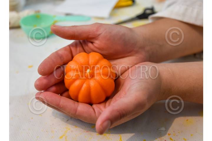 SAN ANTONIO LA ISLA, ESTADO DE MÉXICO, 31OCTUBRE2020.- Julia Villavicencio es una mujer emprendedora de San Antonio la Isla que se dedica a la elaboración de jabones y velas aromáticas, fundando hace 5 años su marca llamada “Mahwu”, para la época de Día de Muertos decidió elaborar velas con forma de calabaza de diversos tamaños con aroma a mandarina, canela y naranja; en su taller inicia fabricando sus moldes de silicon en base a calabazas reales, y posteriormente le da forma a la parafina, todo es un proceso artesanal y tuvo que innovar en sus productos ante la contingencia por COVID-19, ya que perdió pedidos y no pudo realizar ventas de forma física utilizando las redes sociales. FOTO: CRISANTA ESPINOSA AGUILAR /CUARTOSCURO.COM