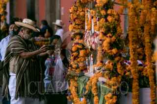 CIUDAD DE MÉXICO, 31OCTUBRE2020.- El patio central de Palacio Nacional alberga el altar “Una flor para cada Alma”, instalado por el gobierno federal para rendir homenaje a las víctimas de Covid-19. La ofrenda consta de un tapete monumental y con ofrendas individuales por cada región del país. La pandemia por Covid-19 ha cobrado la vida de 91, 289 mexicanos. FOTO: GALO CAÑAS/CUARTOSCURO.COM
