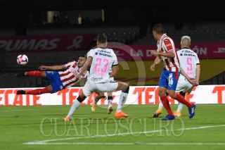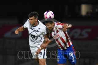 CIUDAD DE MÉXICO, 31OCTUBRE2020.- Como parte de la jornada 16 del Torneo Guardianes 2020, los Pumas de la Universidad y las Chias de Guadalajara empataron a dos goles. El juego se disputó en la cancha del Estadio Olímpico Universitario, por parte de los tapatíos anotó Uriel Antuna y Jesús Molina, por los capitalinos, Nicolás Freire y Carlos González. FOTO: DANIEL AUGUSTO /CUARTOSCURO.COM