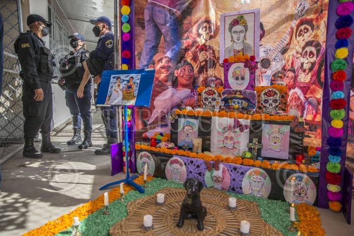 ENSENADA, BAJA CALIFORNIA, 01NOVIEMBRE2020.- Jóvenes privados de la libertad rindieron homenaje a los fieles difuntos en un concurso de altares realizado en el Centro de Internamiento para Adolescentes de Ensenada. Papel picado, calaveras y retratos pintados a mano fueron parte de los elementos que incluyeron los participantes del evento promovido por las autoridades del centro para desarrollar sus habilidades además de fomentar el interés por la cultura en los adolescentes. FOTO: OMAR MARTÍNEZ /CUARTOSCURO.COM