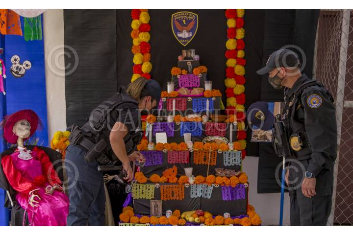ENSENADA, BAJA CALIFORNIA, 01NOVIEMBRE2020.- Jóvenes privados de la libertad rindieron homenaje a los fieles difuntos en un concurso de altares realizado en el Centro de Internamiento para Adolescentes de Ensenada. Papel picado, calaveras y retratos pintados a mano fueron parte de los elementos que incluyeron los participantes del evento promovido por las autoridades del centro para desarrollar sus habilidades además de fomentar el interés por la cultura en los adolescentes. FOTO: OMAR MARTÍNEZ /CUARTOSCURO.COM