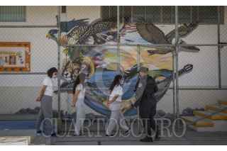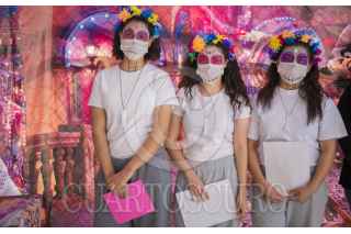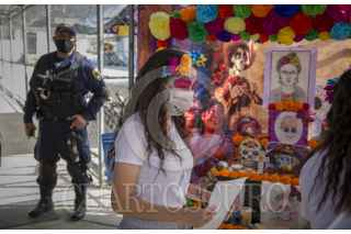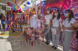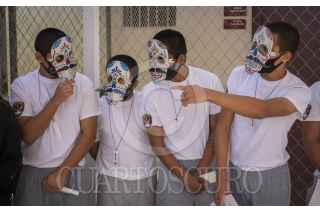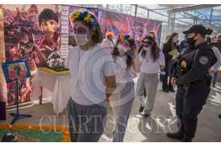 ENSENADA, BAJA CALIFORNIA, 01NOVIEMBRE2020.- Jóvenes privados de la libertad rindieron homenaje a los fieles difuntos en un concurso de altares realizado en el Centro de Internamiento para Adolescentes de Ensenada. Papel picado, calaveras y retratos pintados a mano fueron parte de los elementos que incluyeron los participantes del evento promovido por las autoridades del centro para desarrollar sus habilidades además de fomentar el interés por la cultura en los adolescentes. FOTO: OMAR MARTÍNEZ /CUARTOSCURO.COM