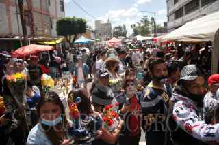 CIUDAD DE MÉXICO, 01NOVIEMBRE2020.- Pesé a la contingencia sanitaria a causa del virus SARS-CoV-2 creyentes de la Santa Muerte se congregaron sin medidas sanitarias para celebrar el día de esta en el altar ubicado en la calle Alfarería del Barrio de Tepito. FOTO: ANDREA MURCIA /CUARTOSCURO.COM