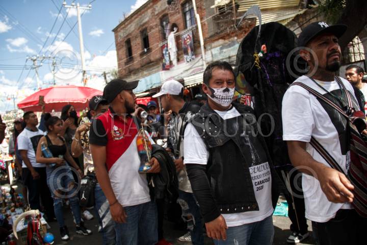 CIUDAD DE MÉXICO, 01NOVIEMBRE2020.- Pesé a la contingencia sanitaria a causa del virus SARS-CoV-2 creyentes de la Santa Muerte se congregaron sin medidas sanitarias para celebrar el día de esta en el altar ubicado en la calle Alfarería del Barrio de Tepito. FOTO: ANDREA MURCIA /CUARTOSCURO.COM