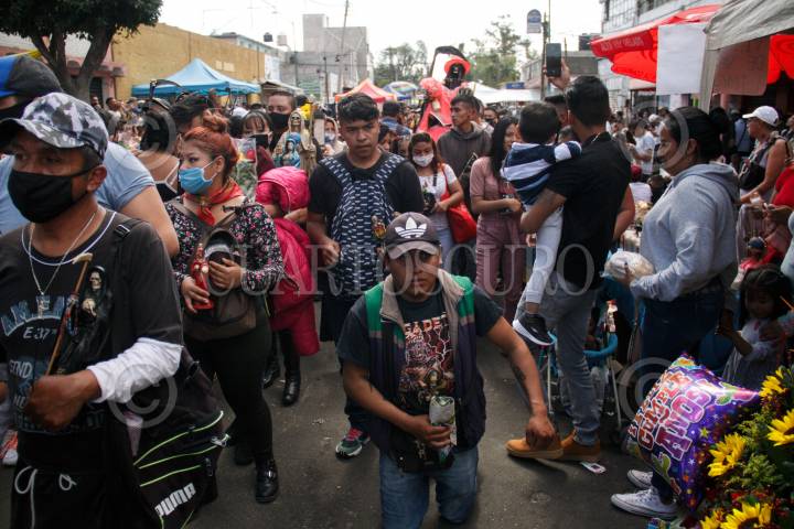 CIUDAD DE MÉXICO, 01NOVIEMBRE2020.- Pesé a la contingencia sanitaria a causa del virus SARS-CoV-2 creyentes de la Santa Muerte se congregaron sin medidas sanitarias para celebrar el día de esta en el altar ubicado en la calle Alfarería del Barrio de Tepito. FOTO: ANDREA MURCIA /CUARTOSCURO.COM