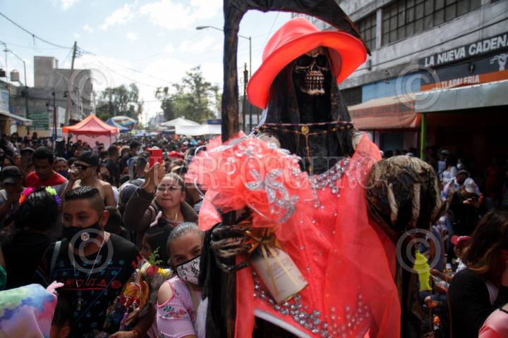 CIUDAD DE MÉXICO, 01NOVIEMBRE2020.- Pesé a la contingencia sanitaria a causa del virus SARS-CoV-2 creyentes de la Santa Muerte se congregaron sin medidas sanitarias para celebrar el día de esta en el altar ubicado en la calle Alfarería del Barrio de Tepito. FOTO: ANDREA MURCIA /CUARTOSCURO.COM