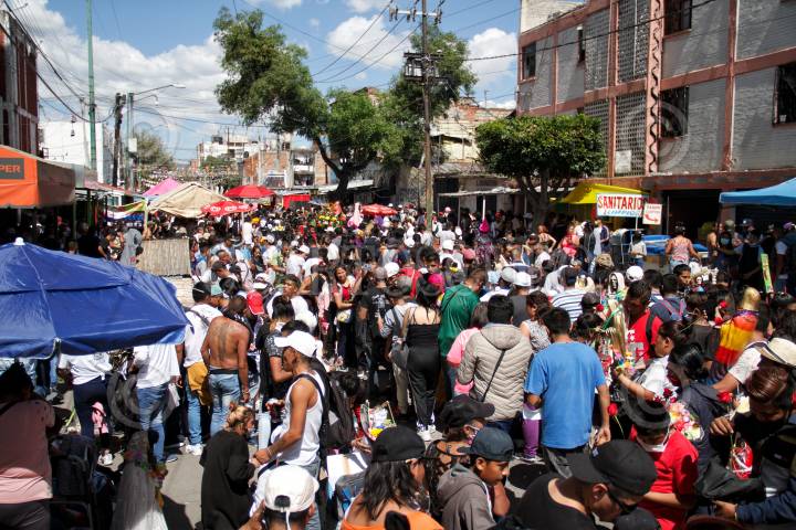 CIUDAD DE MÉXICO, 01NOVIEMBRE2020.- Pesé a la contingencia sanitaria a causa del virus SARS-CoV-2 creyentes de la Santa Muerte se congregaron sin medidas sanitarias para celebrar el día de esta en el altar ubicado en la calle Alfarería del Barrio de Tepito. FOTO: ANDREA MURCIA /CUARTOSCURO.COM