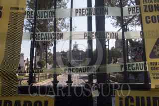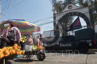 CIUDAD DE MÉXICO, 01NOVIEMBRE2020.- Debido a la pandemia del Covid-19, autoridades cerraron el Panteón de San Andrés Mixquic para evitar aglomeraciones y contagios entre los traunseúntes. Elementos de la policía resguardaron la entrada para prohibir el paso a la gente que quisiera entrar. FOTO: GRACIELA LÓPEZ/CUARTOSCURO.COM